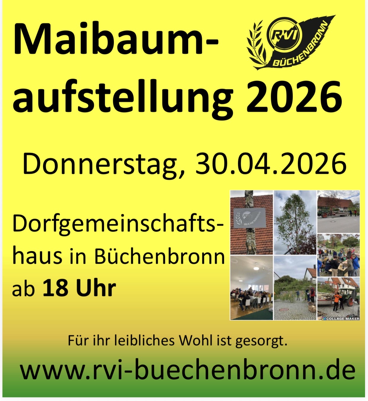 Am 30. April wird der Maibaum in Büchenbronn aufgestellt. Wir laden Sie herzlich zu diesem Ereignis ein!